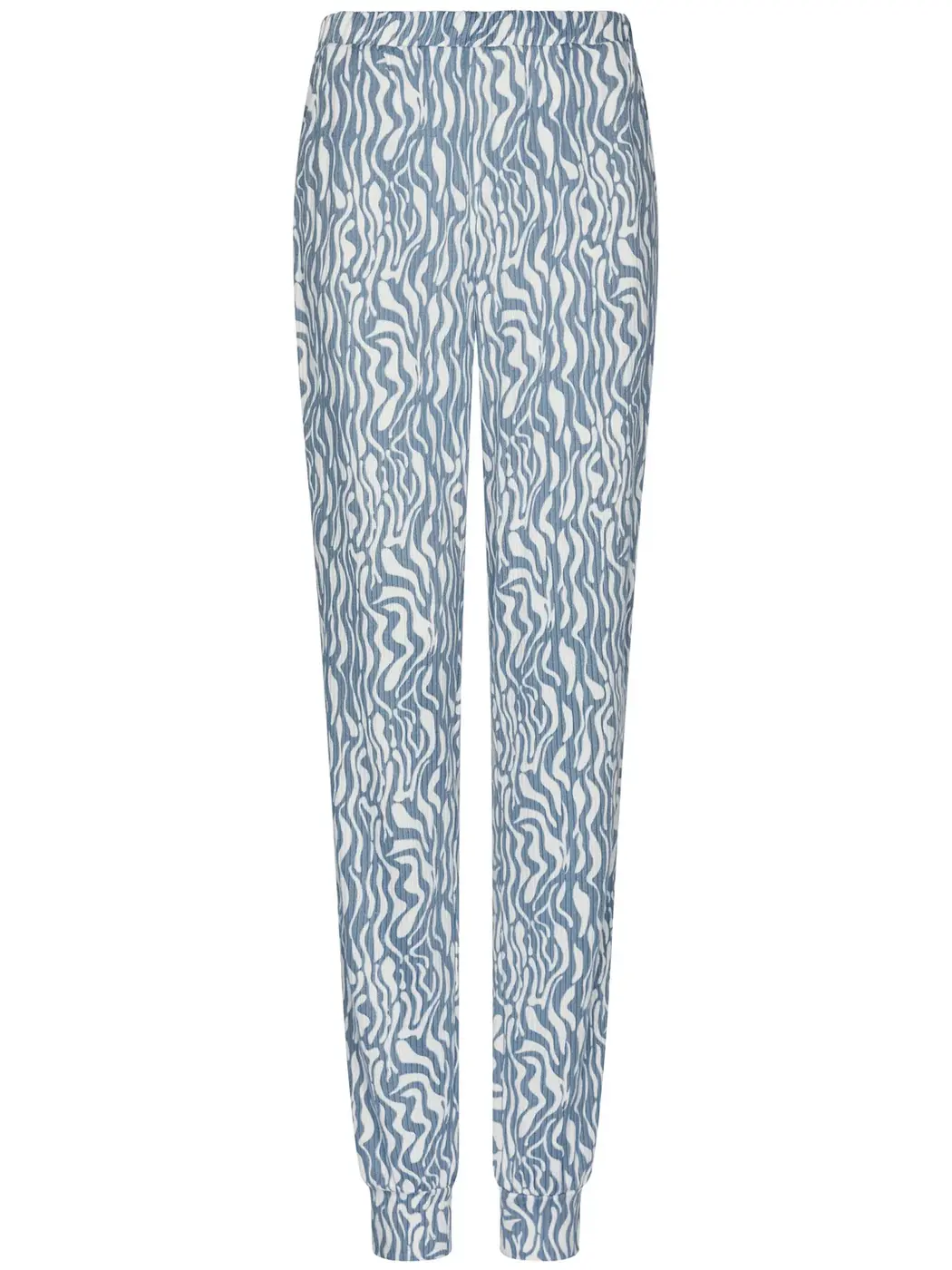 De lange broek past perfect bij het shirt en heeft hetzelfde printje als het shirt. Dankzij de elastische tailleband zodat de broek altijd lekker zit, of je nu in bed ligt of lekker op de bank ontspant. Deze pyjama is een ideale keuze voor ontspannen avonden en een heerlijke nachtrust.