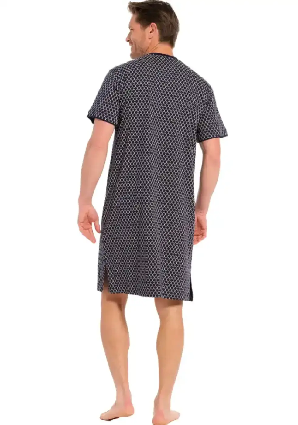 Artikelnr.: HRN13241-602-2-52950% katoen, 50% Modal. Hoge kwaliteit nachthemd van Pastunette voor heren in blauwe kleur met een stijlvolle print. Luchtig model, waardoor perfect geschikt om te dragen bij warme dagen.