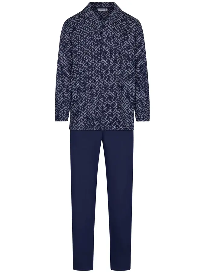 Pastunette Heren Pyjama katoen met knoopsluiting - Linear Donkerblauw