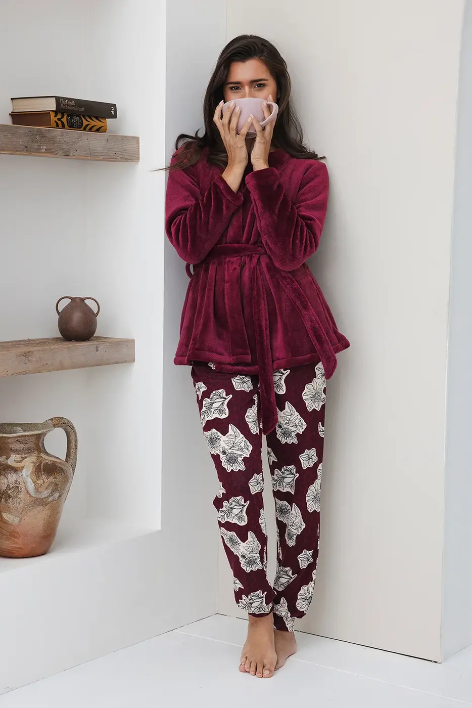 Pastunette premium dames pyjama lange mouwen - Viscose - Burgundy