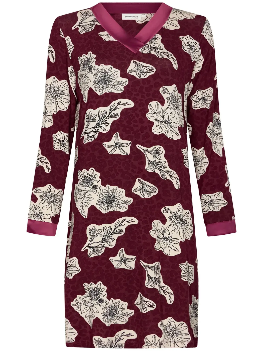 95% Viscose, 5% Elastaan: Leuk viscose dames nachthemd lange mouw van Pastunette premium in een mooi all over print dessin. Heerlijk zachte en luxe viscose kwaliteit (een stuk zachter dan katoen)
