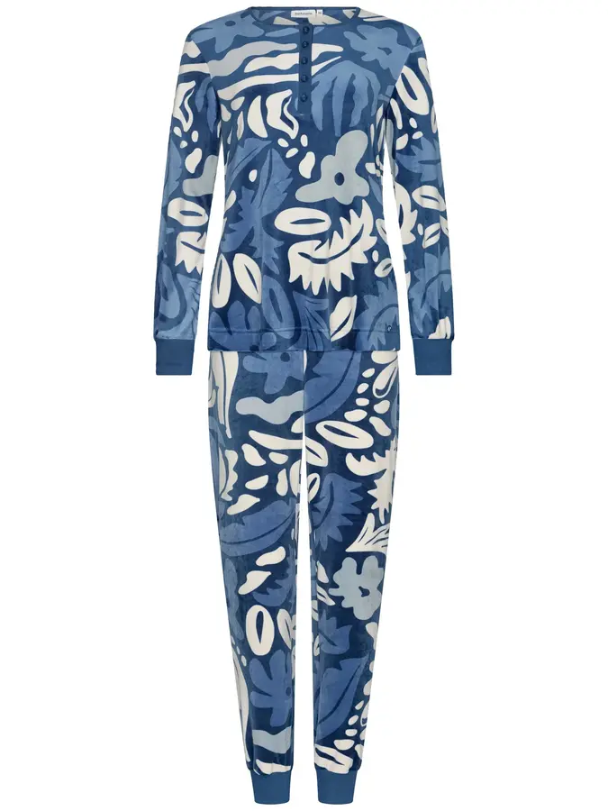 Pastunette warme dames pyjama Velours - Blue Bloom