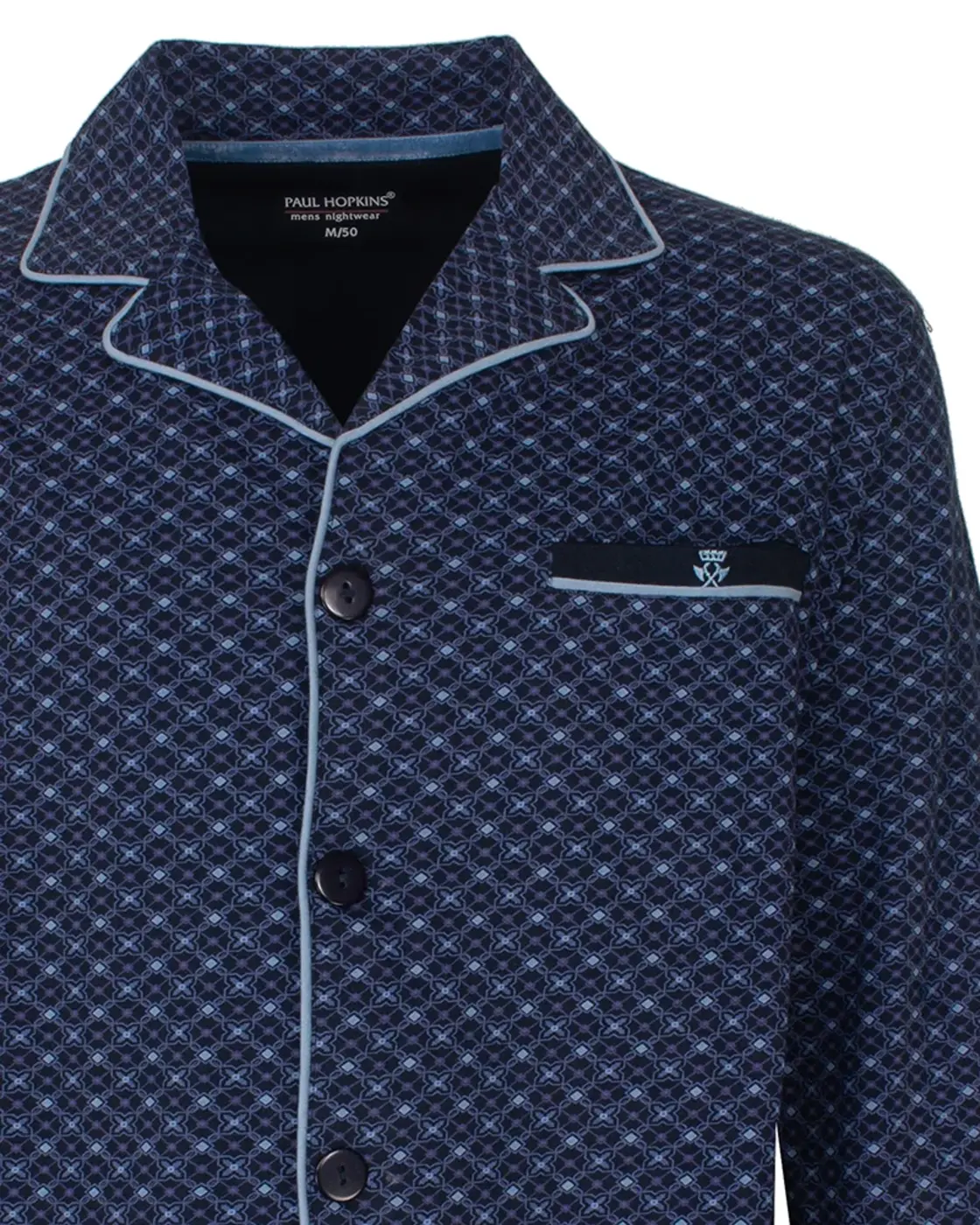 Paul Hopkins heren pyjama doorknoop - Knoopsluiting - Darkblue
