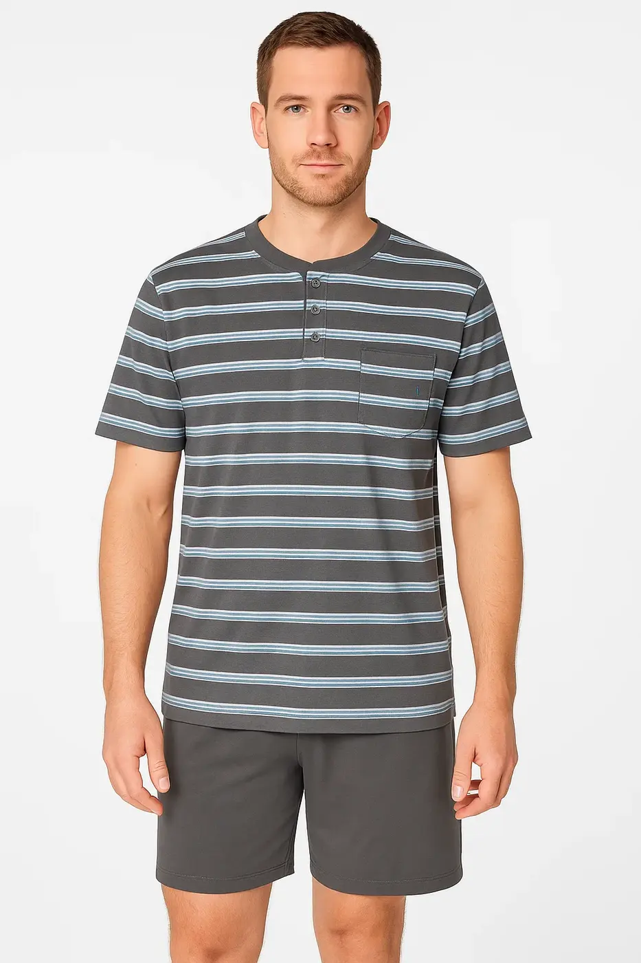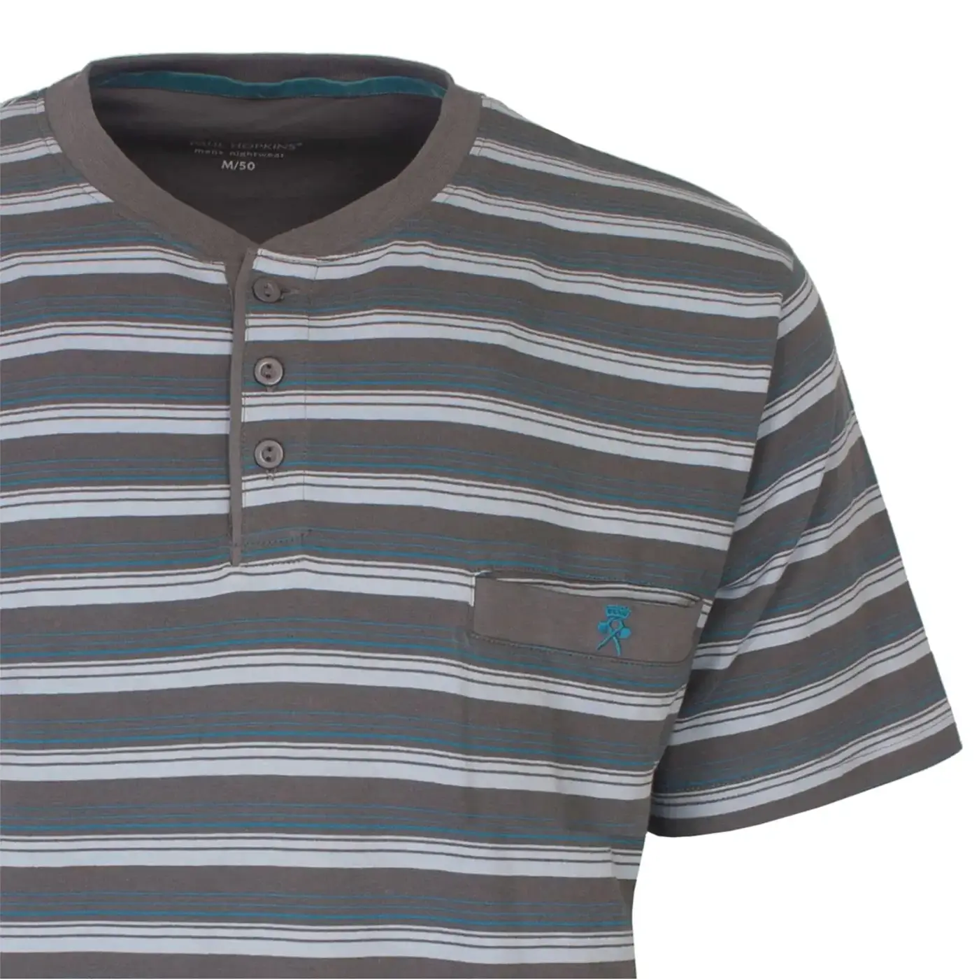 Artikelnr.: HRPPHSAH15004A-streep100% katoen: Mooie kwaliteit katoenen heren shortama van Paul Hopkins in een grijze streep print