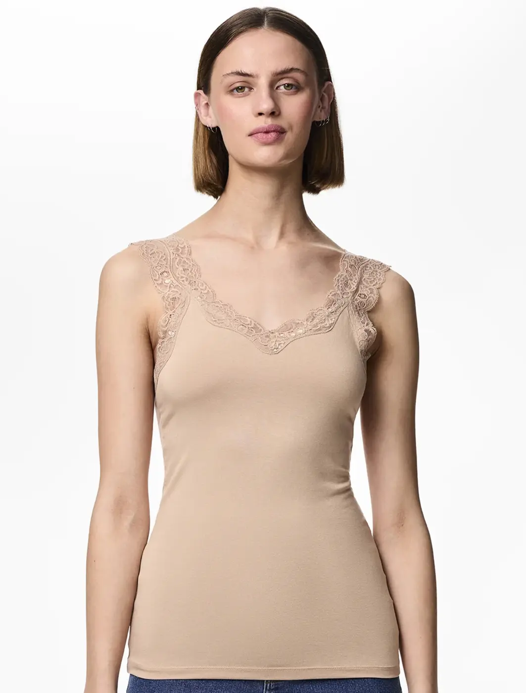 - De chique kanten bandjes zorgen voor een vrouwelijke touch en dat het hemdje ook als bovenkleding te dragen is