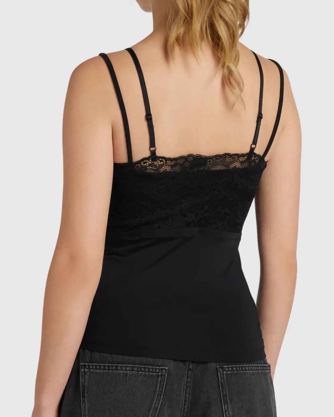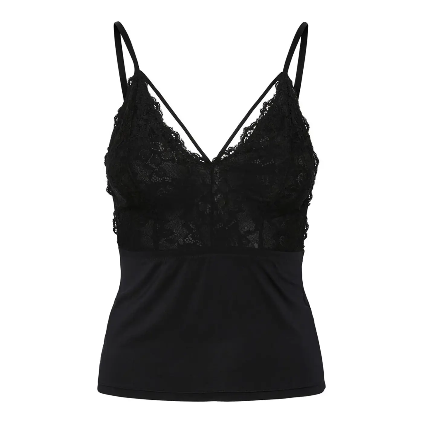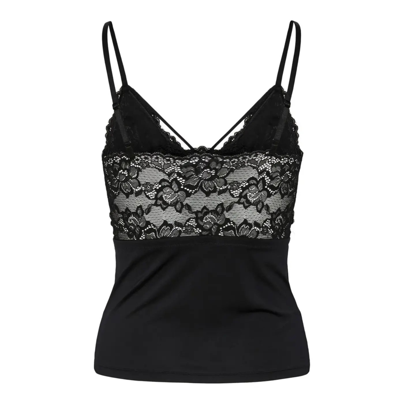 85% Polyamide, 15% Elastaan: Microfiber en chique kanten dames hemd met smallen bandjes van Pieces