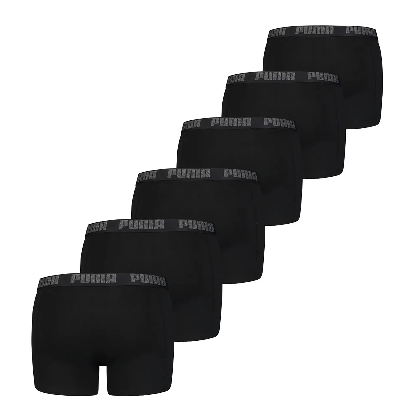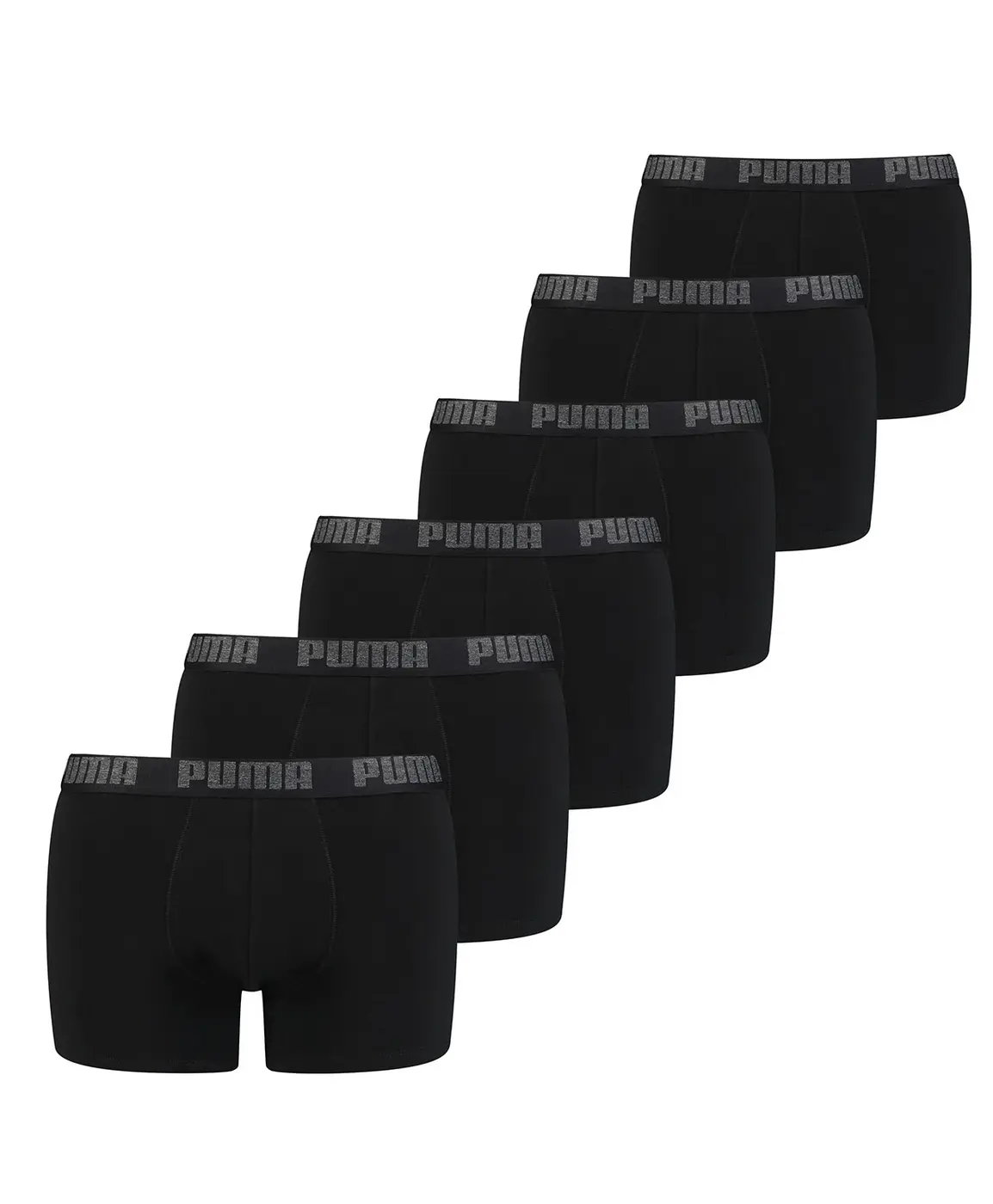 95% Katoen / 5% Elastisch, kwalitatief goede elastisch katoenen heren boxershort met bedrukte elastische band van Puma in een 6-pack