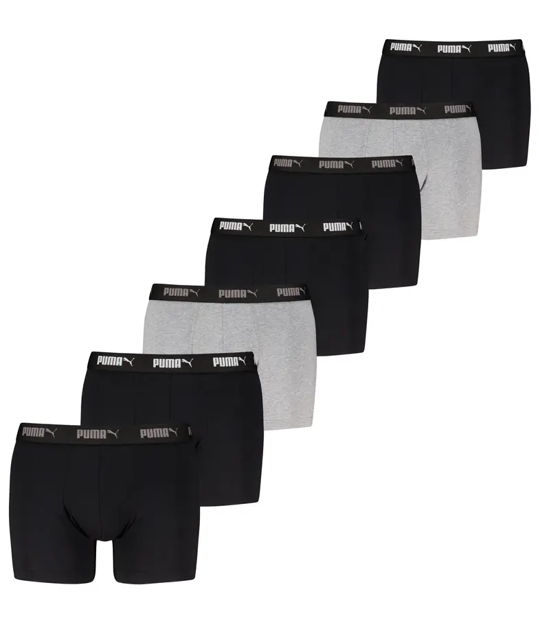 95% Katoen / 5% Elastisch, kwalitatief goede elastisch katoenen heren boxershort met bedrukte elastische band van Puma in een 7-pack. Comfortabele en goed ademende elastisch katoenen kwaliteit