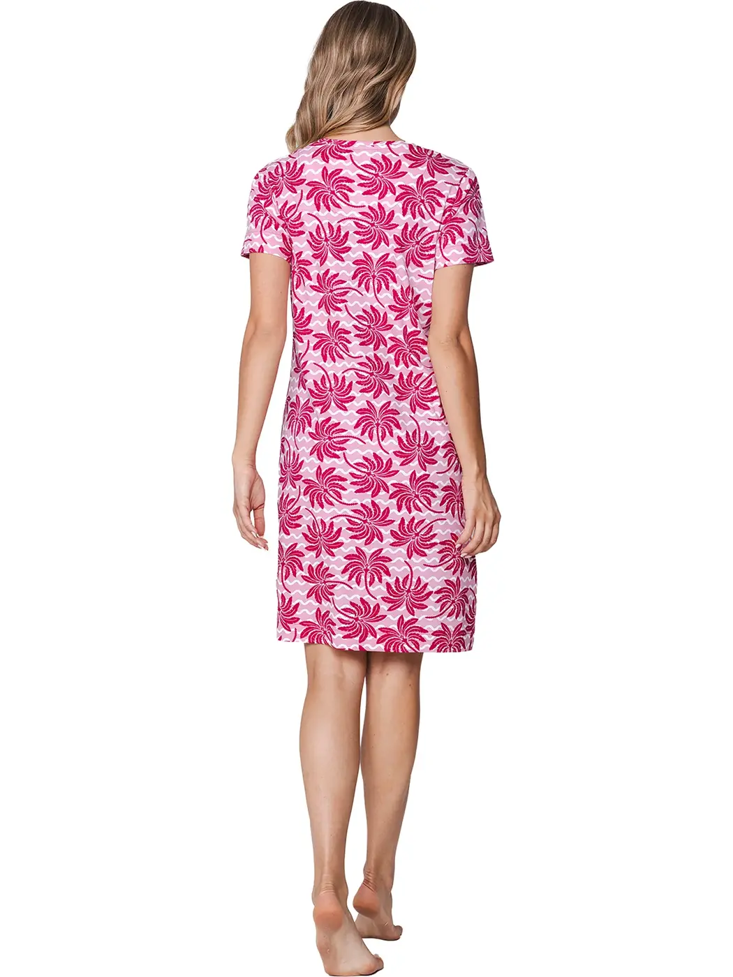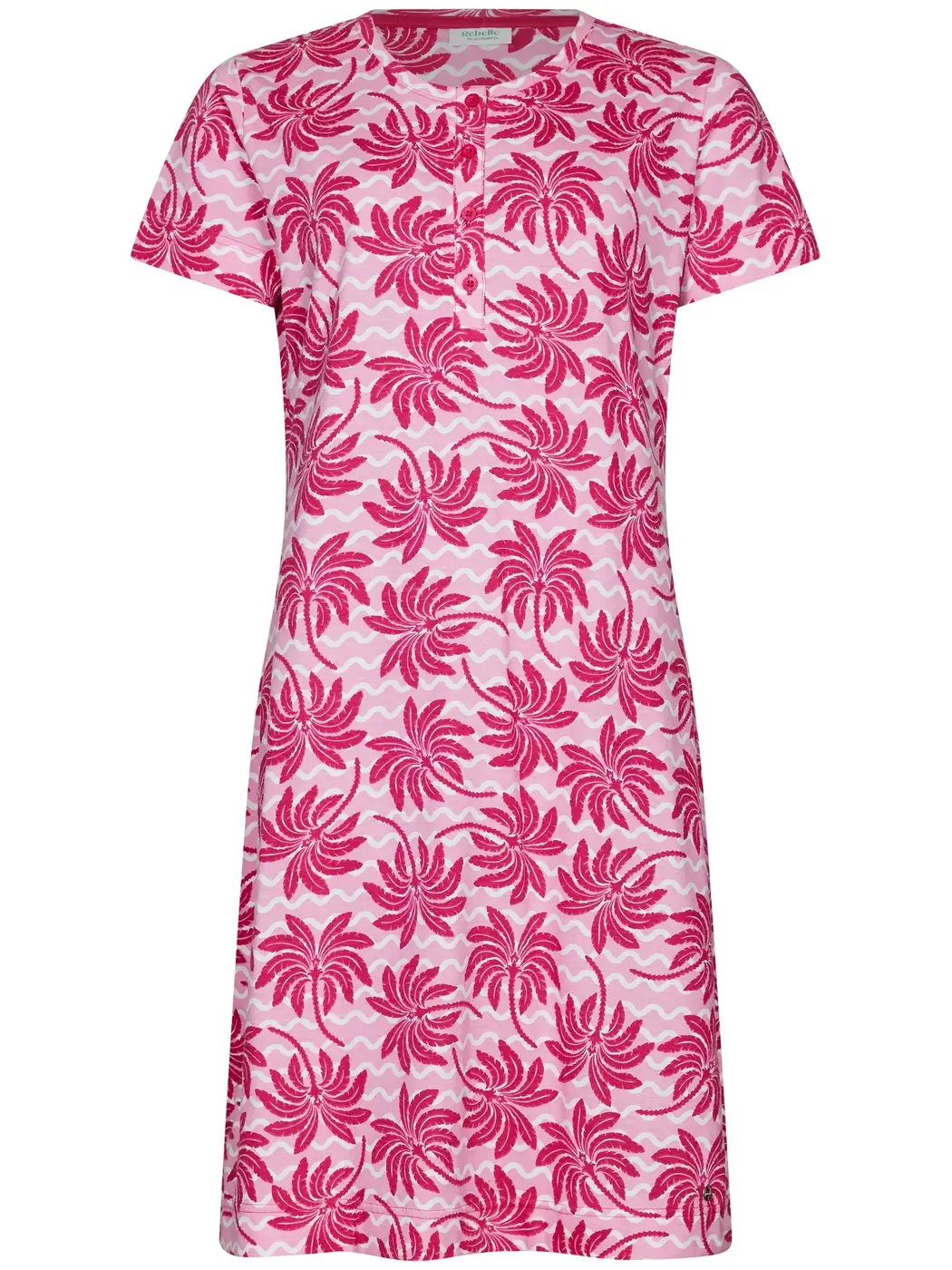 Artikelnr.: DSN111261-618-1-220De roze kleur in combinatie met het speelse all-over palm dessin zorgt voor een frisse, vrolijke look. Het model heeft korte mouwen, een ronde hals en een subtiele knoopsluiting aan de voorzijde, wat het nachthemd net dat beetje extra geeft.