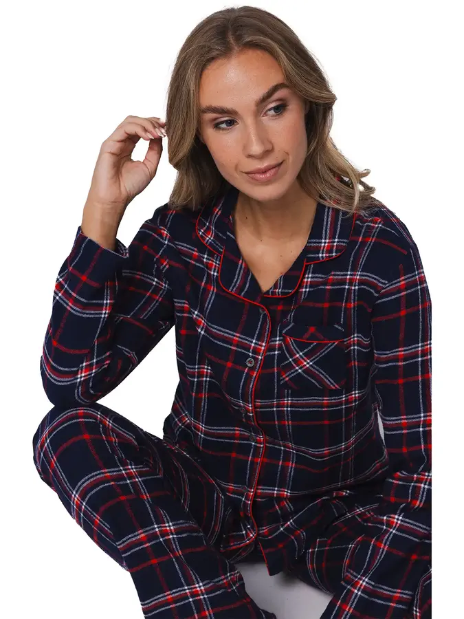Met deze Rebelle dames pyjama in flanel, ben je klaar voor een fijne nachtrust, zelfs in de koudste maanden! Het blauwe ruitjespatroon geeft de pyjama een frisse, speelse uitstraling, terwijl de klassieke overhemdkraag en de doorlopende knoopsluiting een verfijnde afwerking bieden. Het zachte flanel houdt je lekker warm zonder dat het zwaar aanvoelt.
