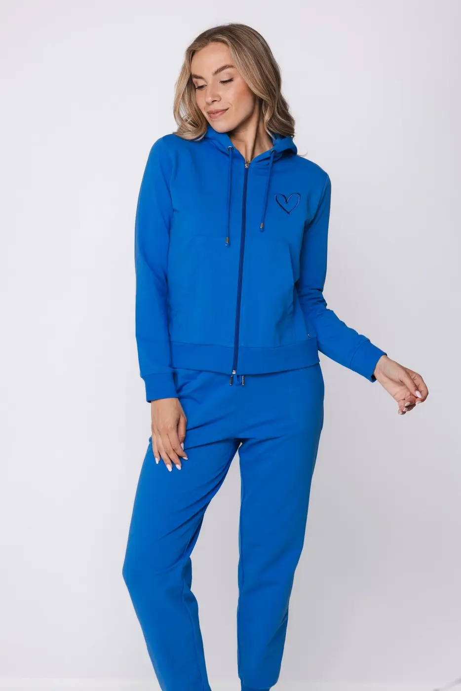 Dit huispak van MyRebelle is perfect voor relaxte dagen thuis en casual moments on the go. De set bestaat uit een vest met rits en een bijpassende broek. Het vest heeft een capuchon met aantrekkoorden, een fijne ritssluiting en steekzakken aan de voorkant. Op de borst is een subtiel hartdetail aangebracht.