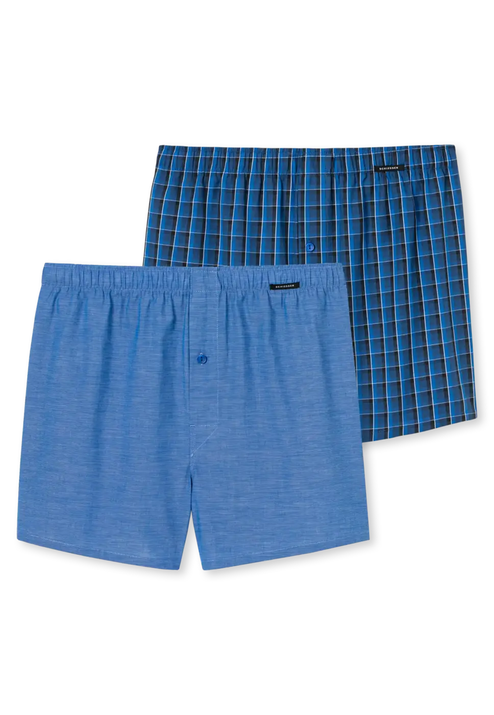 Schiesser 2-Pack heren wijde boxershort katoen woven - Royal