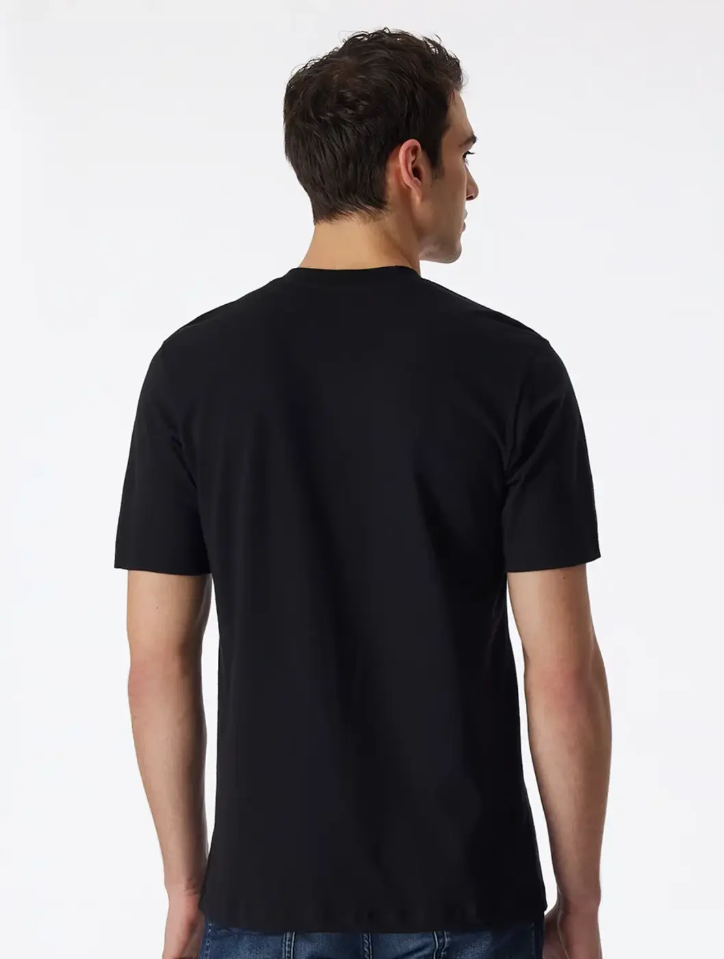 100% Katoen. Katoenen heren T-shirt van Schiesser. Stevige, comfortabele en wat dikkere kwaliteit katoen die wat wijder is van model.