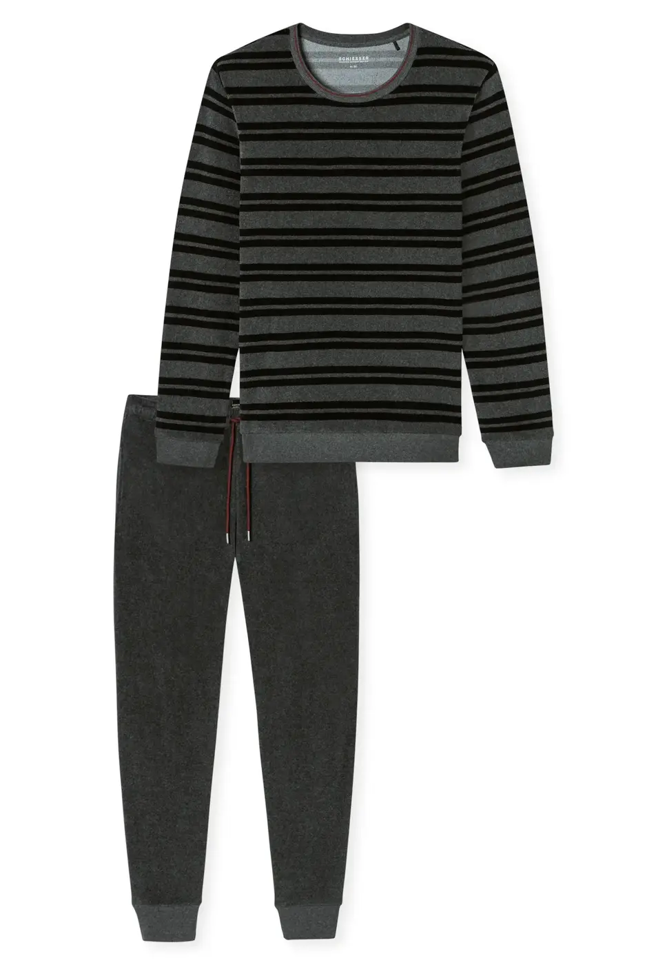 Schiesser heren pyjama badstof - Casual Nightwear - Donkergrijs