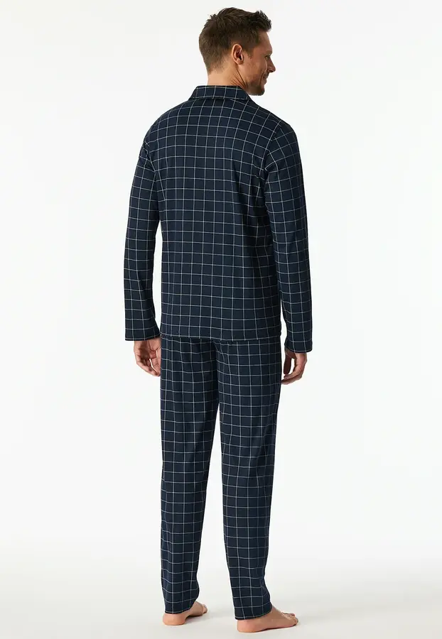 Artikelnr.: HRP183176-804Met een stijlvolle look en 100% zacht katoen zal deze lange, blauwe pyjama geschikt zijn voor iedere lange man. De top met ronde hals en borstzak wordt mooi gecombineerd met de lange broek met witte ruit print, de broek heeft een handig koord in de band. Losse, lichte single jersey katoenen kwaliteit neemt het comfortabele deel over en belooft aangename nachten in de beste SCHIESSER kwaliteit!