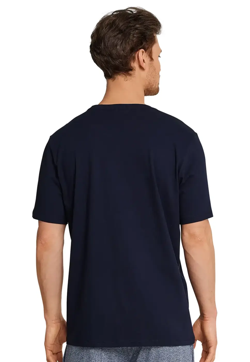 Schiesser heren pyjama shirt korte mouw - Donkerblauw