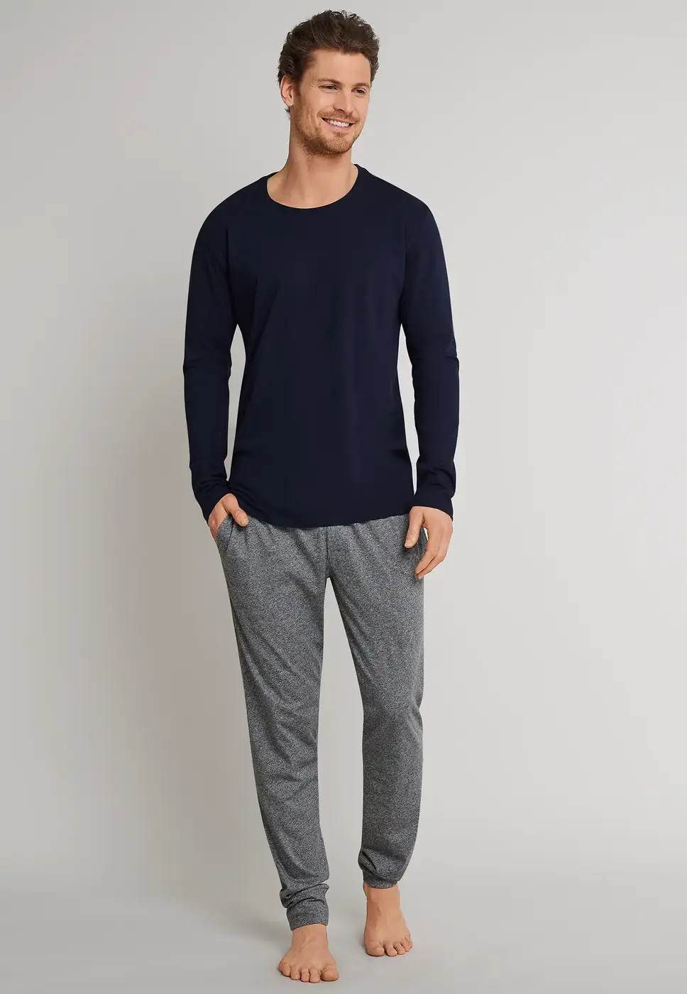 Schiesser heren pyjama shirt lange mouw - Donkerblauw
