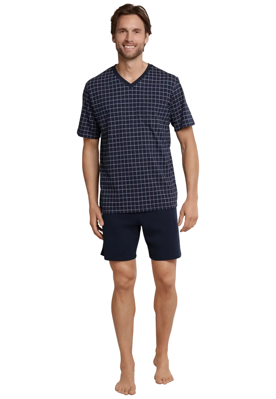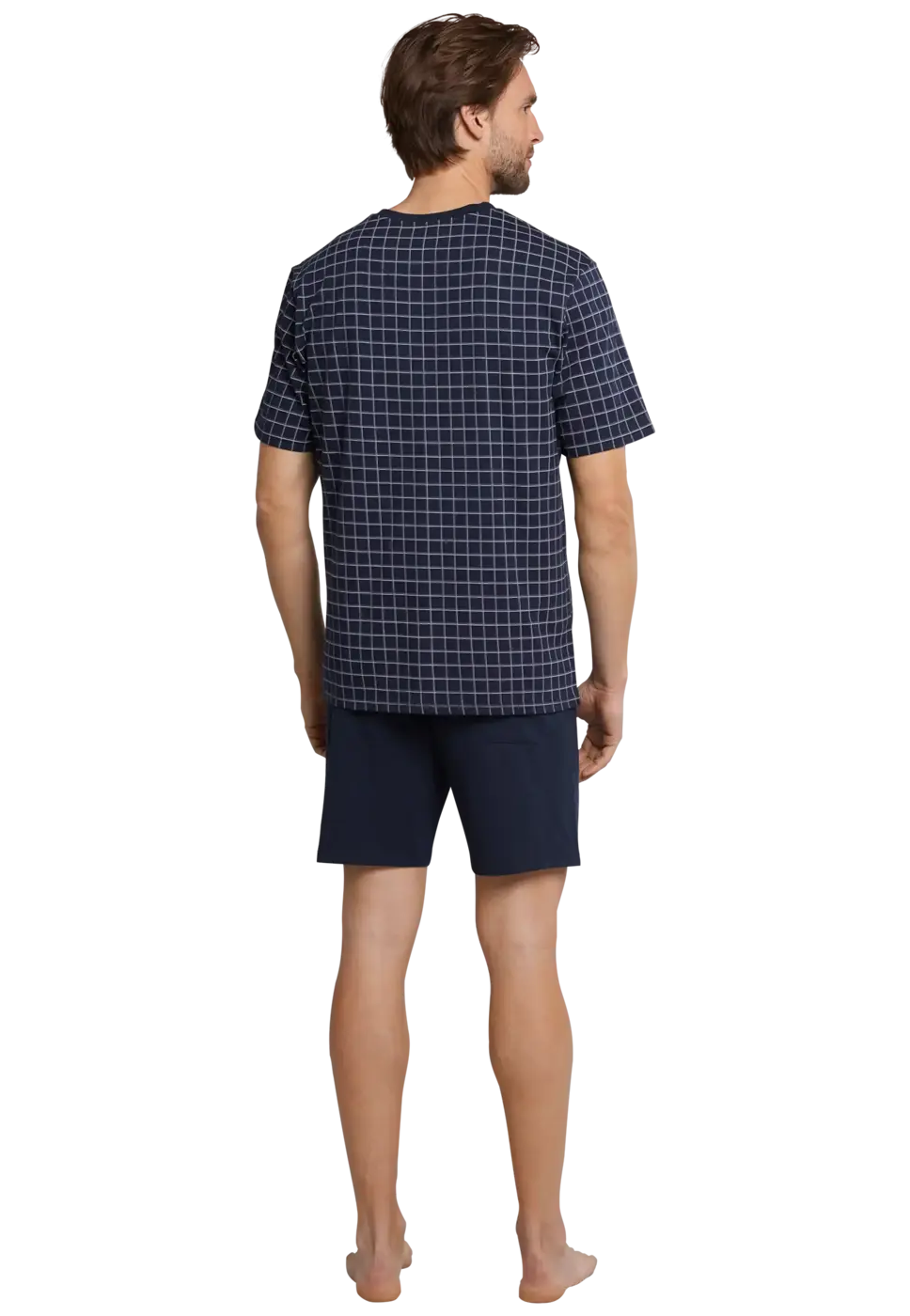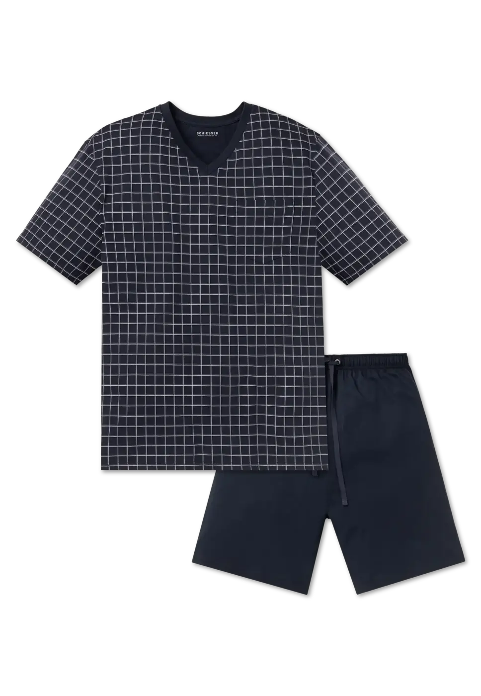 Artikelnr.: HRP159617-803Trendy, korte heren pyjama in een comfortabele, elastische single jersey-kwaliteit. Het shirt met ruiten print heeft een ronde hals met een borstzakje. Het effen broekje heeft een elastische tailleband. Topkwaliteit heren shortama van Schiesser voor een fijne nacht.