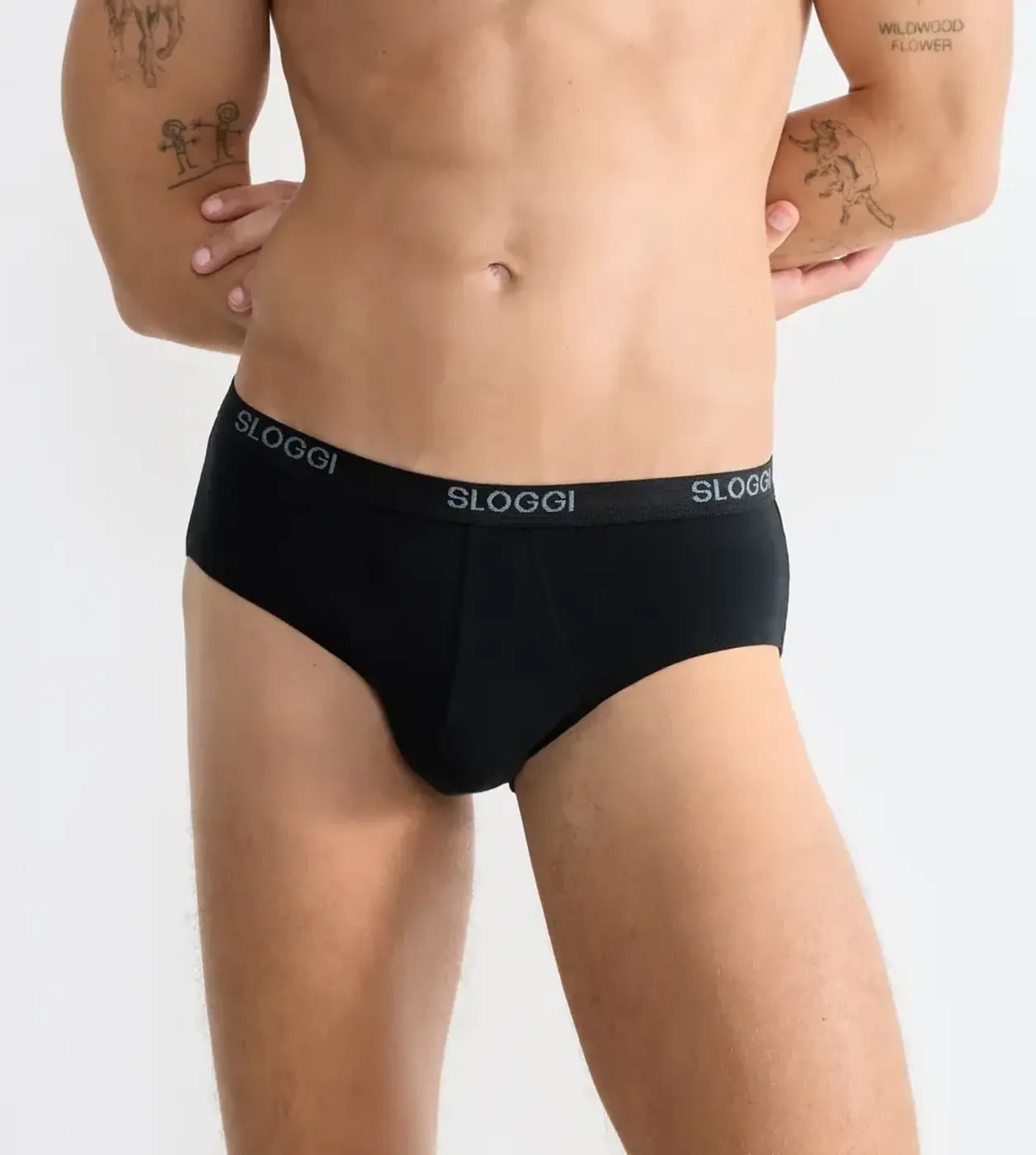 96% katoen 4% elastaan: De alom bekende en altijd goede elastisch katoenen Sloggi heren Midi-heup slip