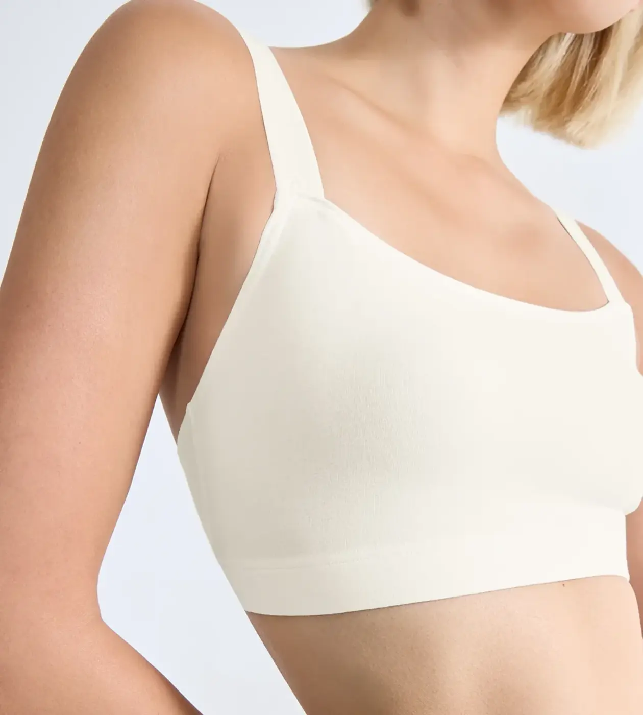 82% biologisch Katoen, 18% Elastaan: Een fijne beha top van katoen kwaliteit.