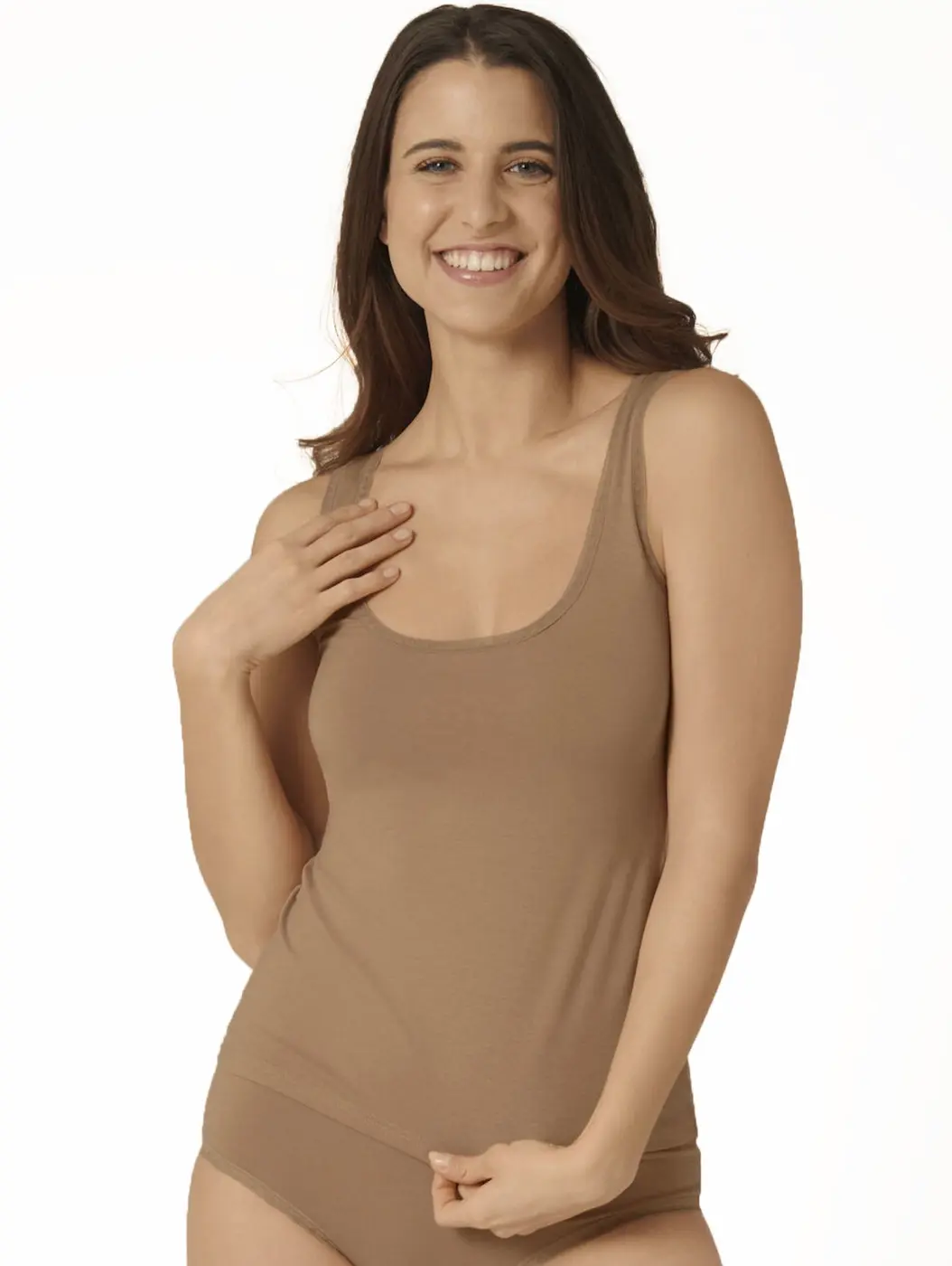 96% Katoen / 4% elastaan, de altijd goede en van een hele mooi kwaliteit elastisch katoenen tank top met uitstekende pasvorm.