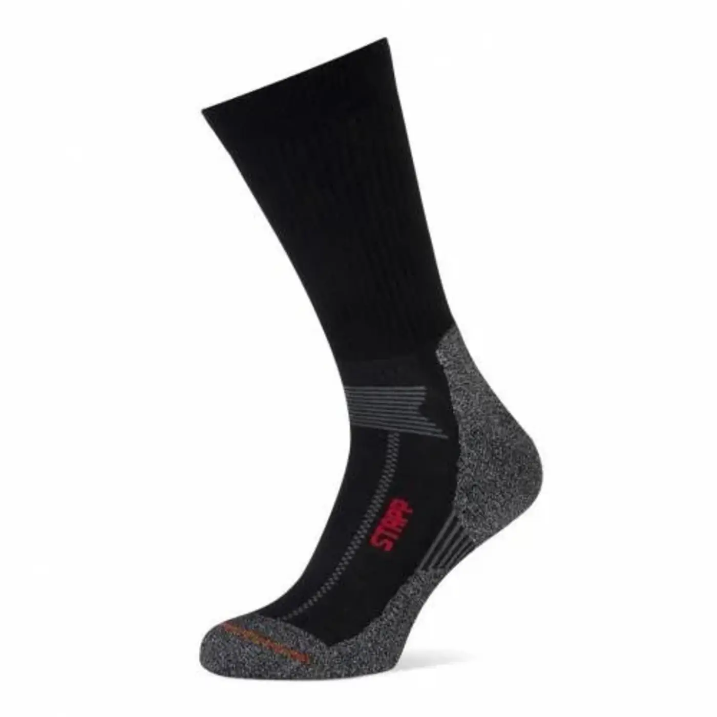 30% Polyester, 18% Polyamide, 17% Merino wol 17% Acryl, 16% Cordura Polyamide 2% Elastomeer: Goede en stevige thermo sok van Stapp. De combinatie van Polyester, wol en acryl zorgen voor een combinatie van stevigheid, warmte en elasticiteit.