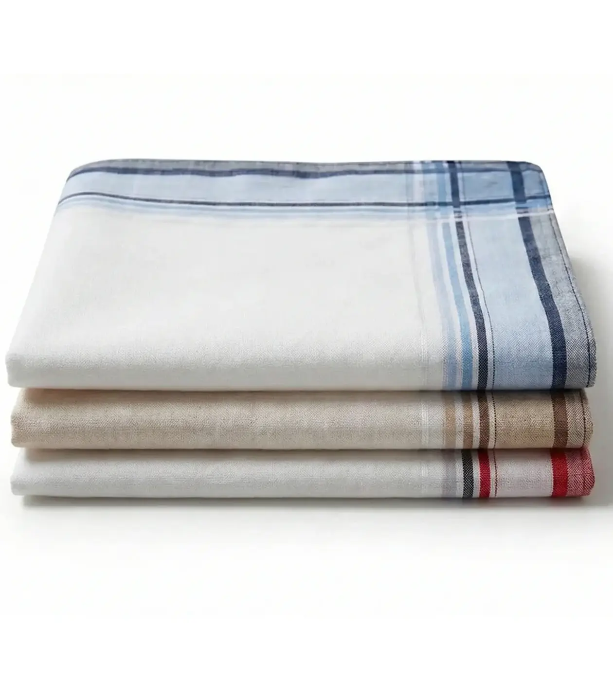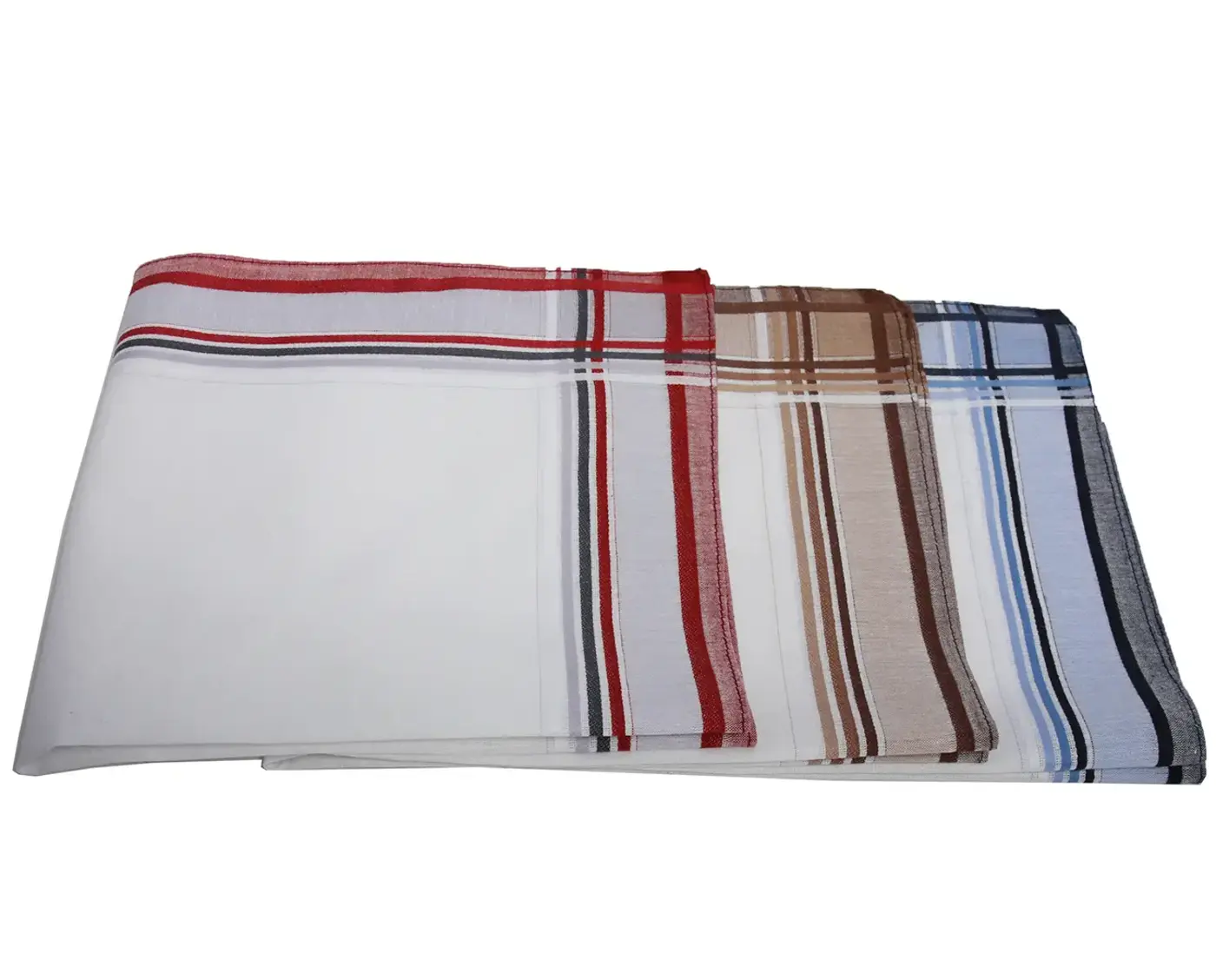 - heren zakdoek met witte ondergrond met rondom een gekleurd streepdessin
