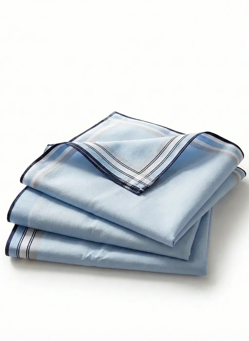 - Lichtblauwe heren zakdoek met per verpakking 3 verschillende gekleurde randen