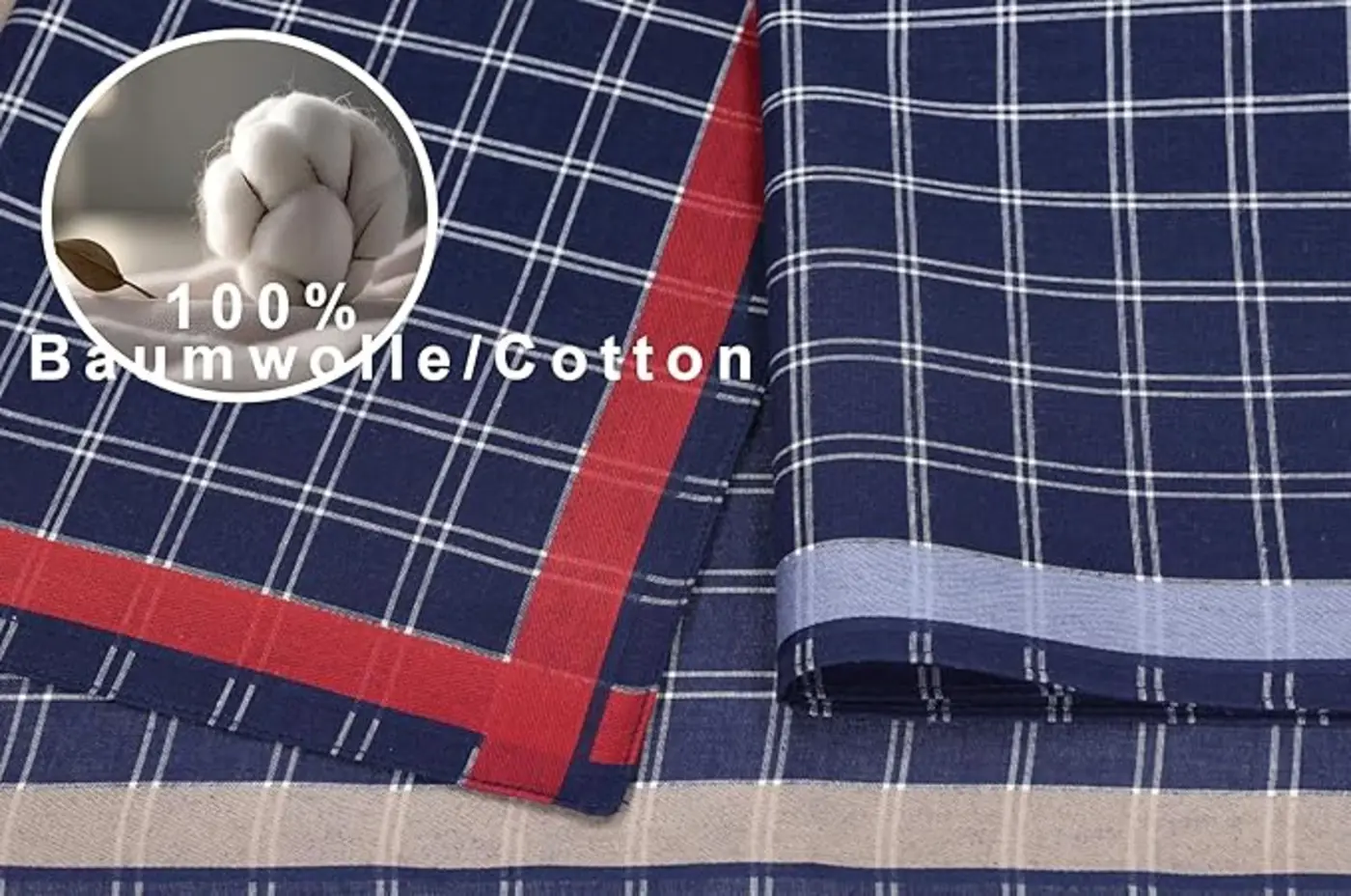 - Zakdoek met donkerblauwe ondergrond en smal streepje