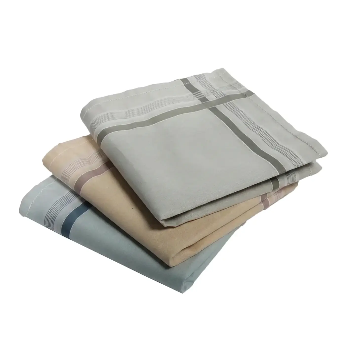 Artikelnr.: HRZ2017-28Deze heren zakdoeken van 100% katoen heeft rondom een brede zoom. Stijlvolle uni zakdoek met rondom een streep dessin. Ontvang 12 stuks in de kleuren grijs, blauw en beige, verpakt per 12 stuks