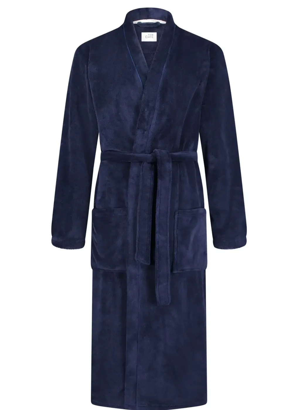 100% fleece, mooie donkerblauwe fleece badjas van het merk Ten Cate