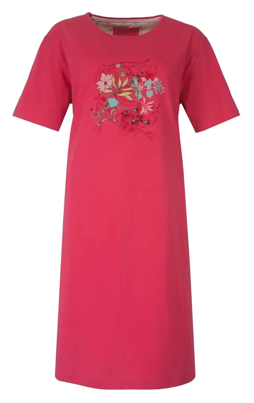 Artikelnr.: DSNTENGD15011A-rood100% katoen, leuk tricot nachthemd met korte mouwen van Tenderness in een rode zomerse kleur