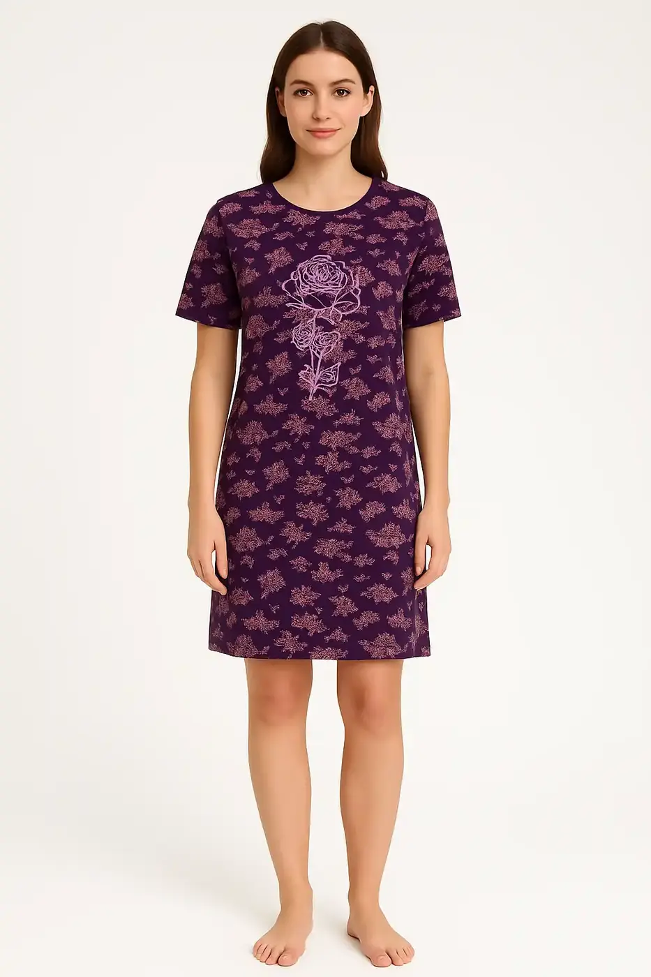 - Paars nachthemd met een ronde hals