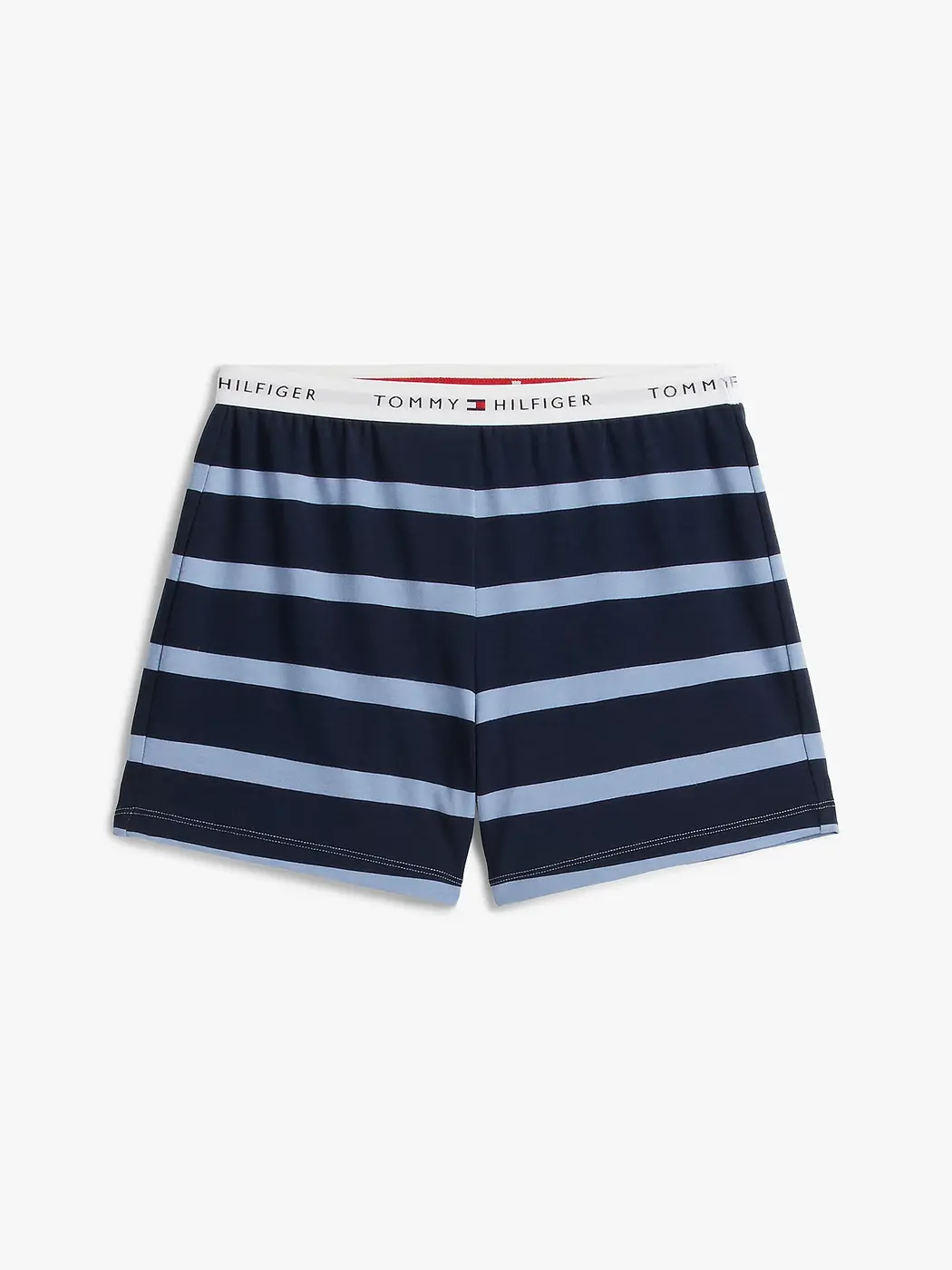 Artikelnr.: JSPUB0UB00575069Hoge kwaliteit jongens shortama met elastische band van Tommy Hilfiger in een blauwe kleur en een gestreepte blauwe broek. Deze katoenen pyjama voelt comfortabel, zacht en warm aan op de huid. Het shirt heeft een ronde hals en de bekende Tommy Hilfiger logo. De broek heeft een elastische band met Tommy Hilfiger logo
