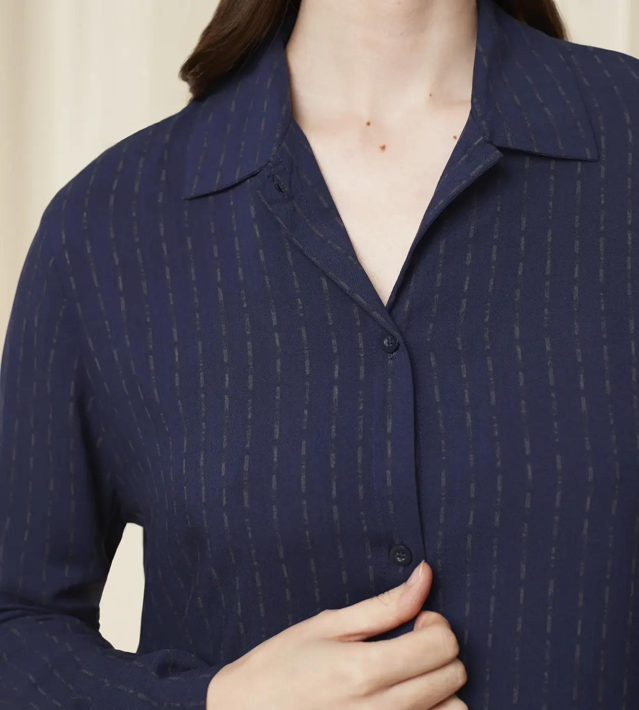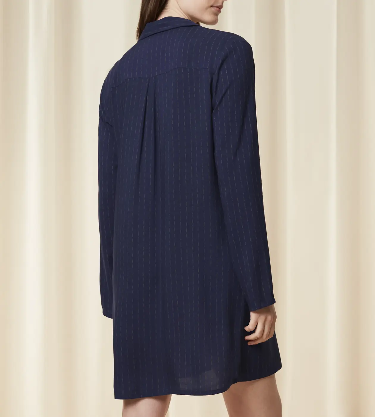 Triumph dames nachthemd Boyfriend - Knoopsluiting - lange mouw - blauw