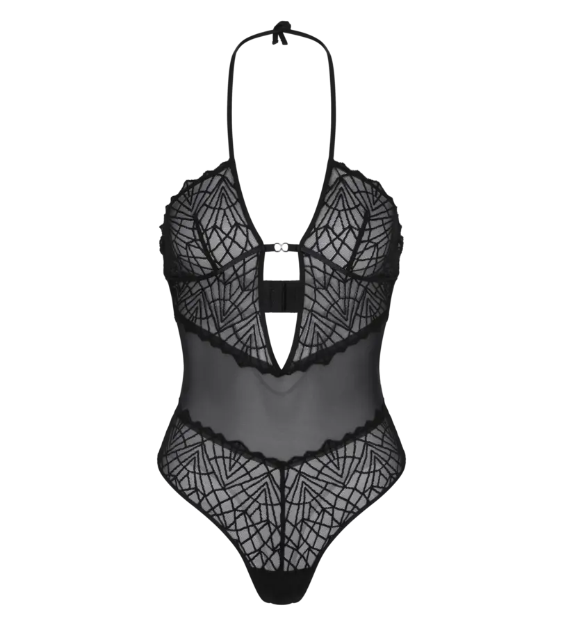 - Halter-stringbody met bandeaucups en extra diep decolleté