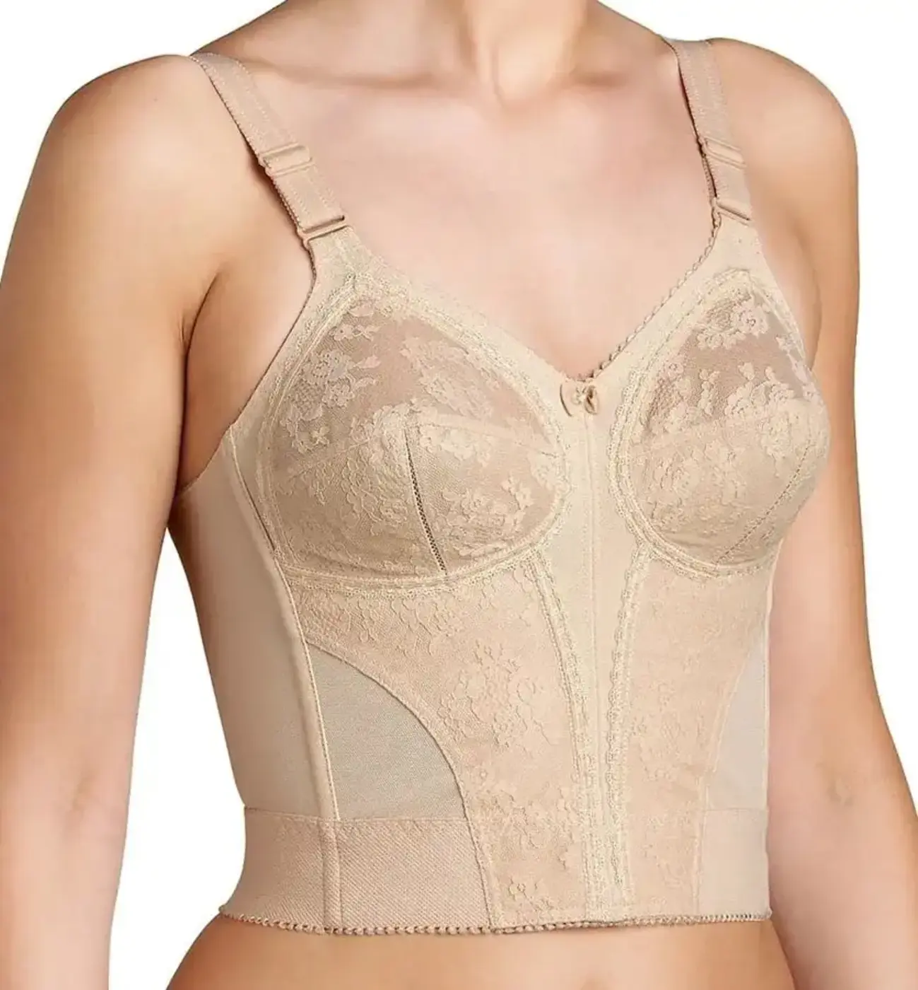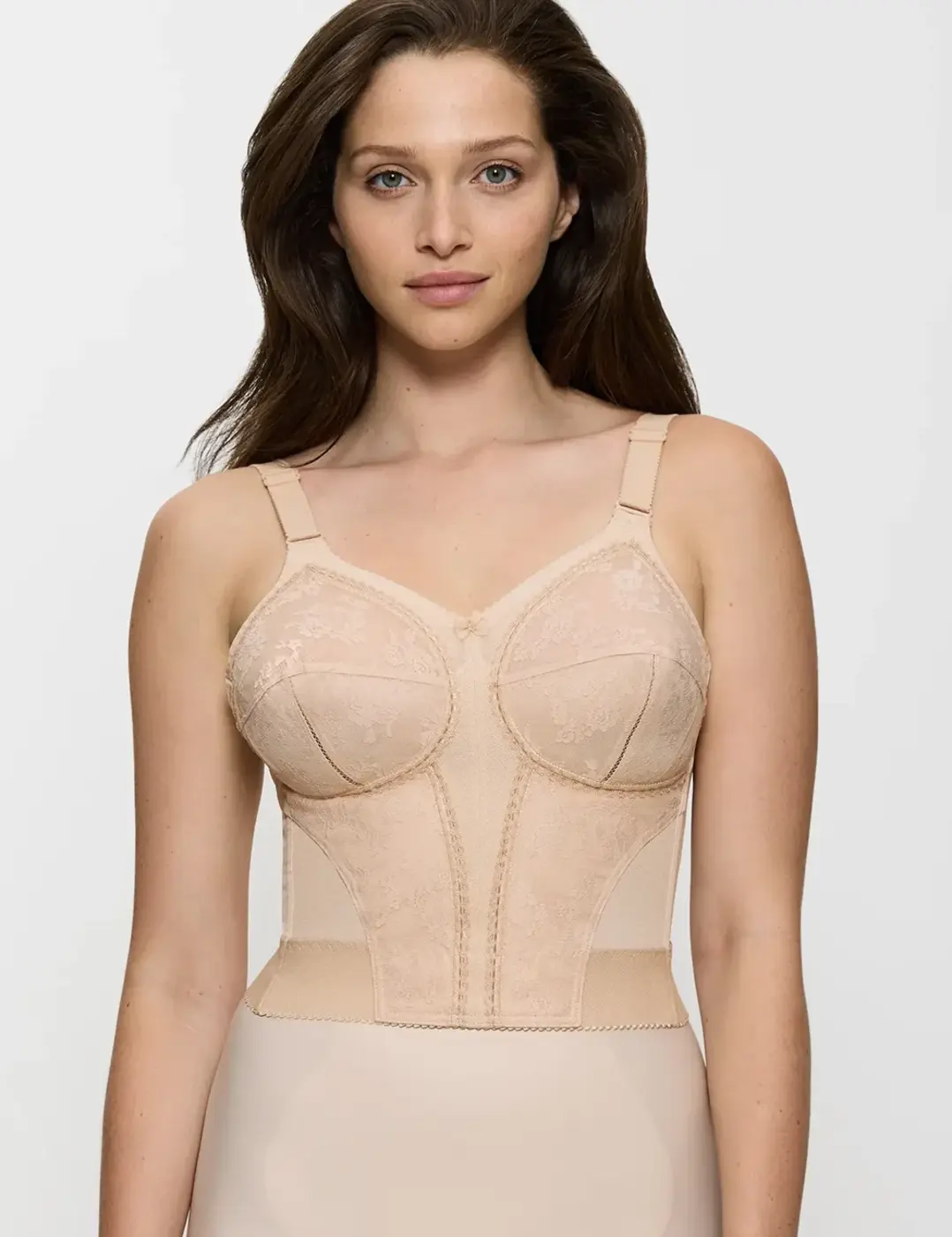 - Stevige lange bh zonder beugel met een corrigerende maagband voor een corrigerend effect aan de buik en met een comfortabele brede rugband